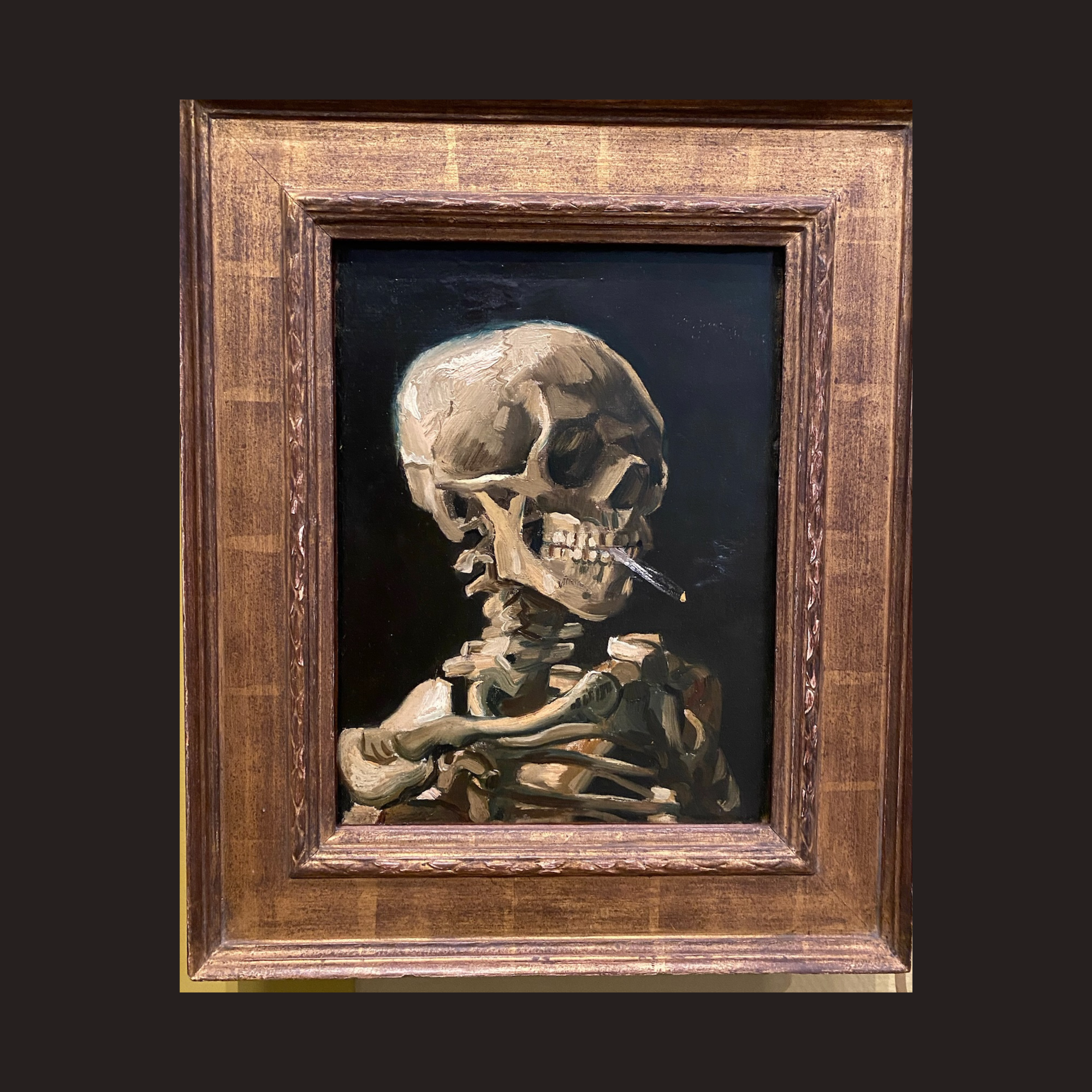 Author's photos: the Van Gogh Museum (museum gallery, self-portrait, Head of a Skeleton with a Burning Cigarette)