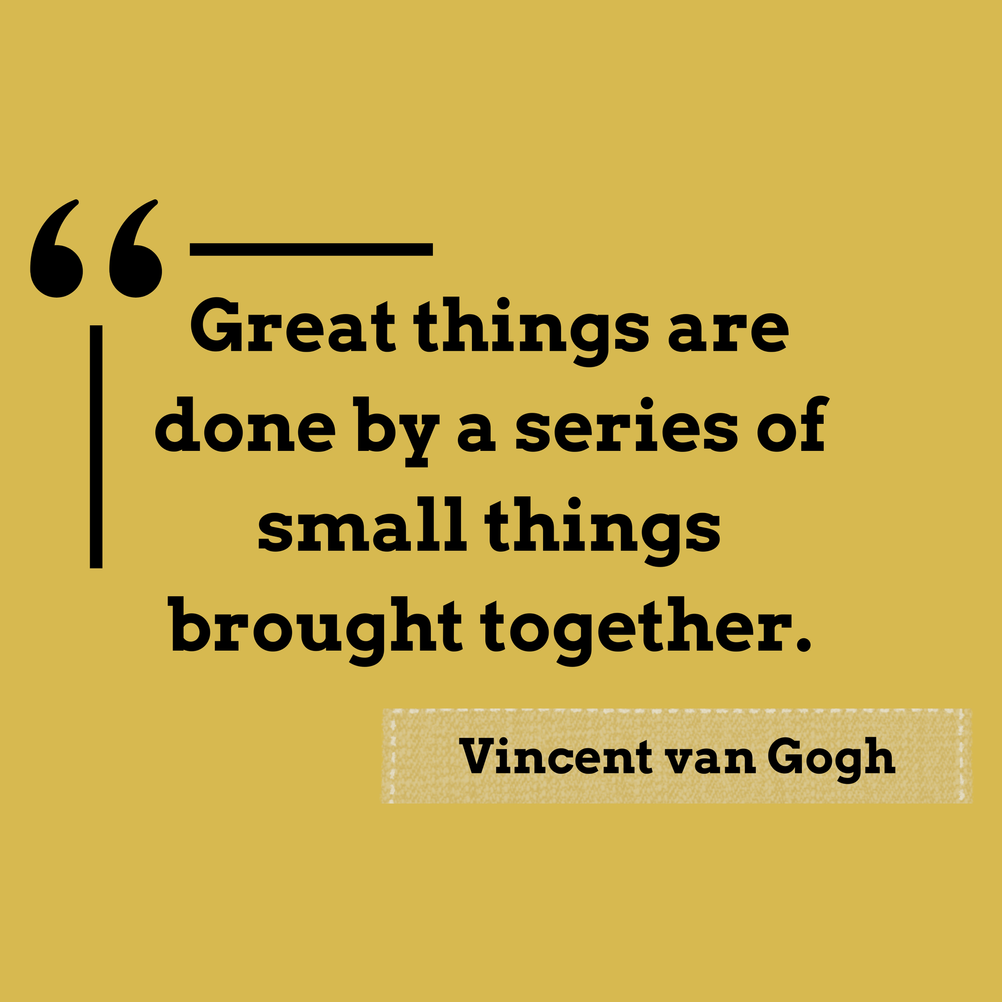 Van Gogh's brother Theo was a constant positive force in his life, and you can find many letters available to the public to read here. I tracked down the source of the quote on small things brought together. It’s from a letter to his brother Theo on Sunday, October 22, 1882 (labeled letter 274 by the museum). The passage that contains the original version of this quote reads: